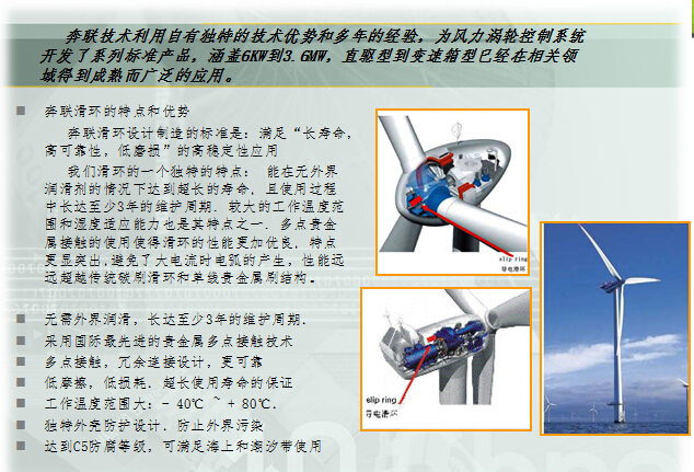 風(fēng)電場(chǎng)業(yè)主、工程師、技術(shù)人員和風(fēng)機(jī)制造商可以通過這樣的一種方法來降低計(jì)劃外維護(hù)的風(fēng)險(xiǎn),即考慮采用那些維護(hù)要求低的、甚至能提前告知何時(shí)會(huì)失效部件。聽上去有些不切合實(shí)際,但事實(shí)并非如此。體形雖小,作用不小纖維刷滑環(huán)就是這樣一種產(chǎn)品。盡管在總成本和風(fēng)機(jī)設(shè)計(jì)中只是微不足道的一小部分,但滑環(huán)對(duì)運(yùn)行起著關(guān)鍵作用?;h(huán)安裝在風(fēng)機(jī)機(jī)艙罩中,通常用于提供變槳功率和控制所需的電氣信號(hào)和能量。滑環(huán)通過一個(gè)旋轉(zhuǎn)的接口輸送電功率和信號(hào)。