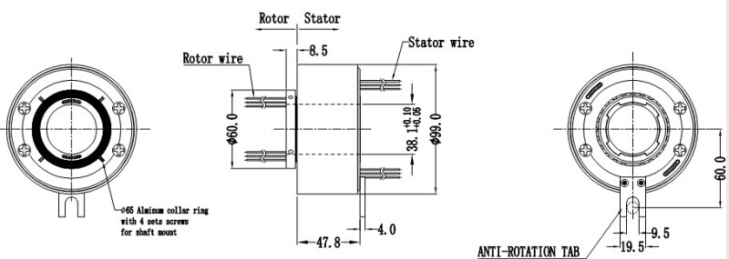 A. 主體端面上有止轉(zhuǎn)片用螺絲使滑環(huán)定子與設(shè)備固定部分相連。