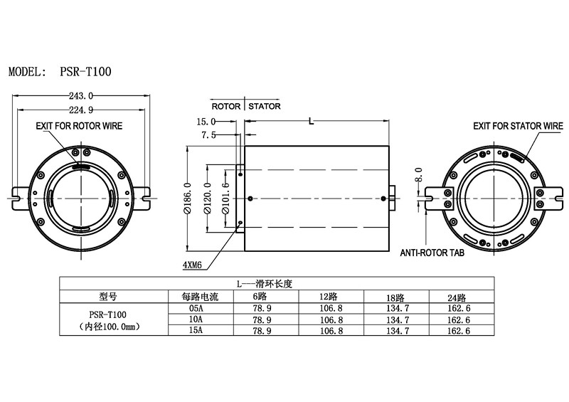 PSR-T100的無障礙過孔直徑為101.6mm,外徑為205mm;采用刷式接觸技術(shù)多點接觸保證接觸穩(wěn)定。低壓力,低摩擦,實現(xiàn)免維護免潤滑超長使用壽命。...