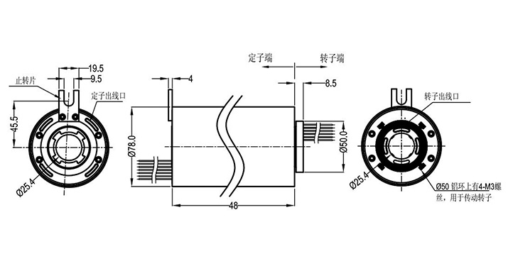 1.裝配時保持滑環(huán)主體部分與轉(zhuǎn)動軸緊密相連,