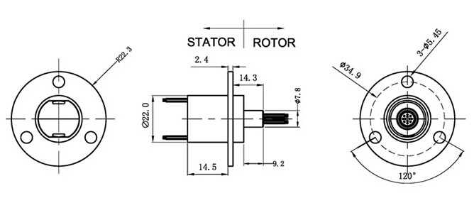 A. 主體端面∮110圓面上3個M3×8的孔與設備固定部分相連,用3個M3(最大外徑)的螺絲安裝好定子