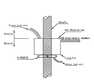 CAUTION: Because of possible geometric mismatching between the customer's application and the slip ring,'hard mouting'of both ends of the slip ring(i.e.securing the rotor and stator such that there is no floating during operation) is not recommended and may cause premature failure. |